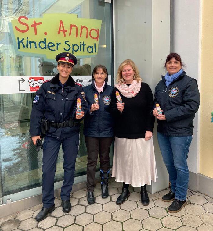 Wie jedes Jahr startete auch am 05.12.2023 wieder die Nikolausaktion der IPA-Wien. Unsere zwei „NikolausBotinnen“ Sabine und Waltraud, steuerten mit der tatkräftigen Unterstützung der Wiener Polizeimusik das St. Anna Kinderspital, das AKH, die Klinik Floridsdorf, das Wilhelminenspital, das SMZ-Ost und die Klinik Favoriten an, um mit - von Hand vorbereiteten – Nikolaussackerl ein Lächeln in Kindergesichter zu zaubern. An dieser Stelle sei auch allen Helfern des Vorstandes der IPA-Wien gedankt, welche nicht weniger als 400 Nikolaussackerl befüllten.