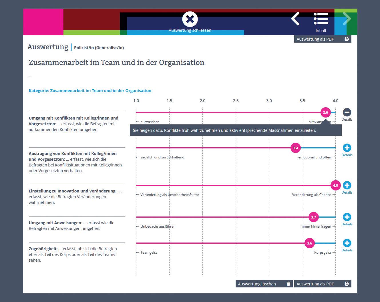 Conclusioni fattuali: l’abilità, di applicare le conoscenze apprese in modo corretto e appropriato alla situazione, è cosa eminente e indispensabile, soprattutto per gli agenti di polizia fortemente esposti, che devono costantemente trovare il giusto equilibrio tra figura «amica e aiutante» e «potere statale».