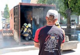 Il primo posto era un «container antincendio», anche se in realtà ce n’erano due, uno dietro l’altro. Innanzitutto bisognava attraversare il primo contenitore riempito con il denso «fumo» prodotto dalla macchina di appannamento. L’obiettivo non era solo trovare e soccorrere una persona nascosta, ma anche manovrare il tubo antincendio per il container, cosa tutt’altro che semplice con il getto che andava verso l’alto, a sinistra, a destra e poi di nuovo in basso e con mobili e oggetti vari nascosti negli stretti passaggi. Una volta superato il primo ostacolo, il fuoco era in agguato nel secondo container. Per poterlo estinguere, occorreva sgomberare il mobilio e dirigere il getto d’acqua in modo mirato. Inoltre, non si doveva dimenticare di salvare il canarino nella gabbia situata nell’angolo più nascosto. Riuscita l’operazione, ci si poteva ritirare, naturalmente ripassando di nuovo attraverso il primo container, tubo incluso. Il tutto doveva avvenire in un arco di tempo di soli 9 minuti.