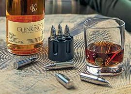 Allora i «proiettili per whisky XL» in acciaio inox di Amerigo sono quello che fa per voi! Queste cartucce alte 5,8 centimetri, una volta presi dal congelatore, raffreddano qualsiasi bevanda senza il rischio di diluirla. Il set di 6 cartucce refrigeranti e la base del proiettile a forma di tamburo di revolver sono acquistabili su Amazon per appena 20 euro.