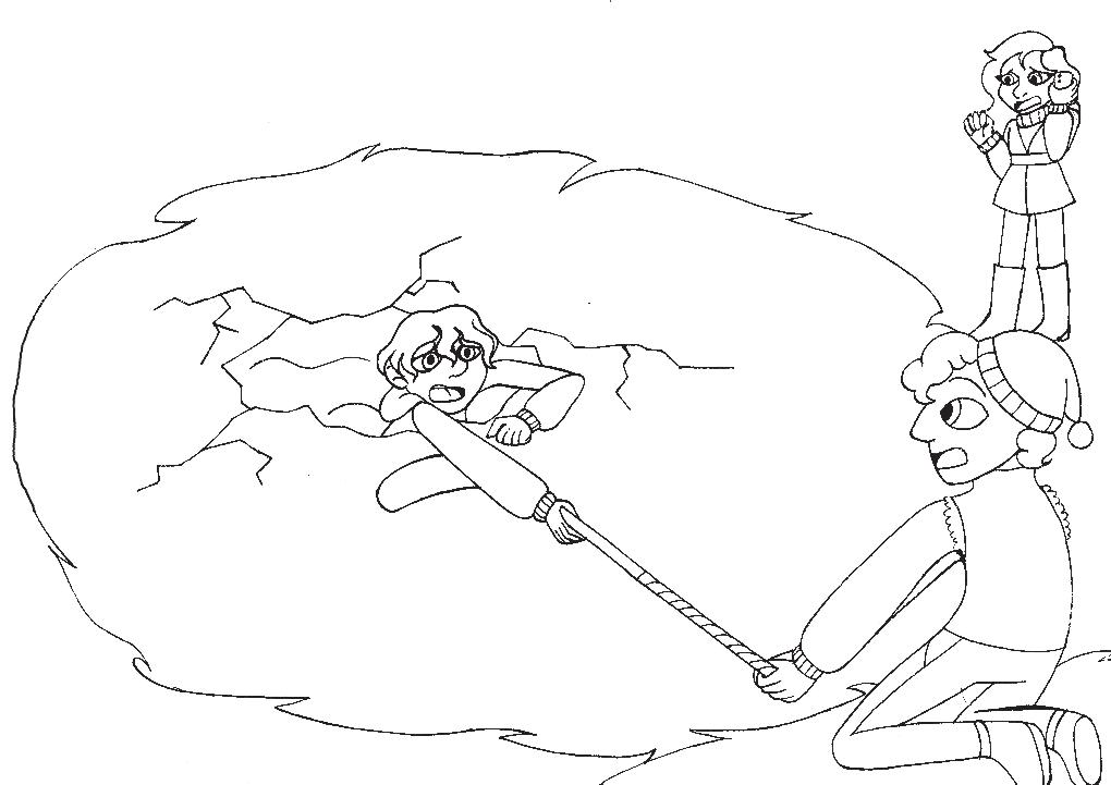 • Mluvte s postiženým kamarádem, ale sami se nevystavujte zbytečnému nebezpečí. Pokud je to ve vašich silách, můžete pomoci podáním hokejky, větve nebo provazu a tak se snažit vytáhnout kamarádovo tělo z vody na led.