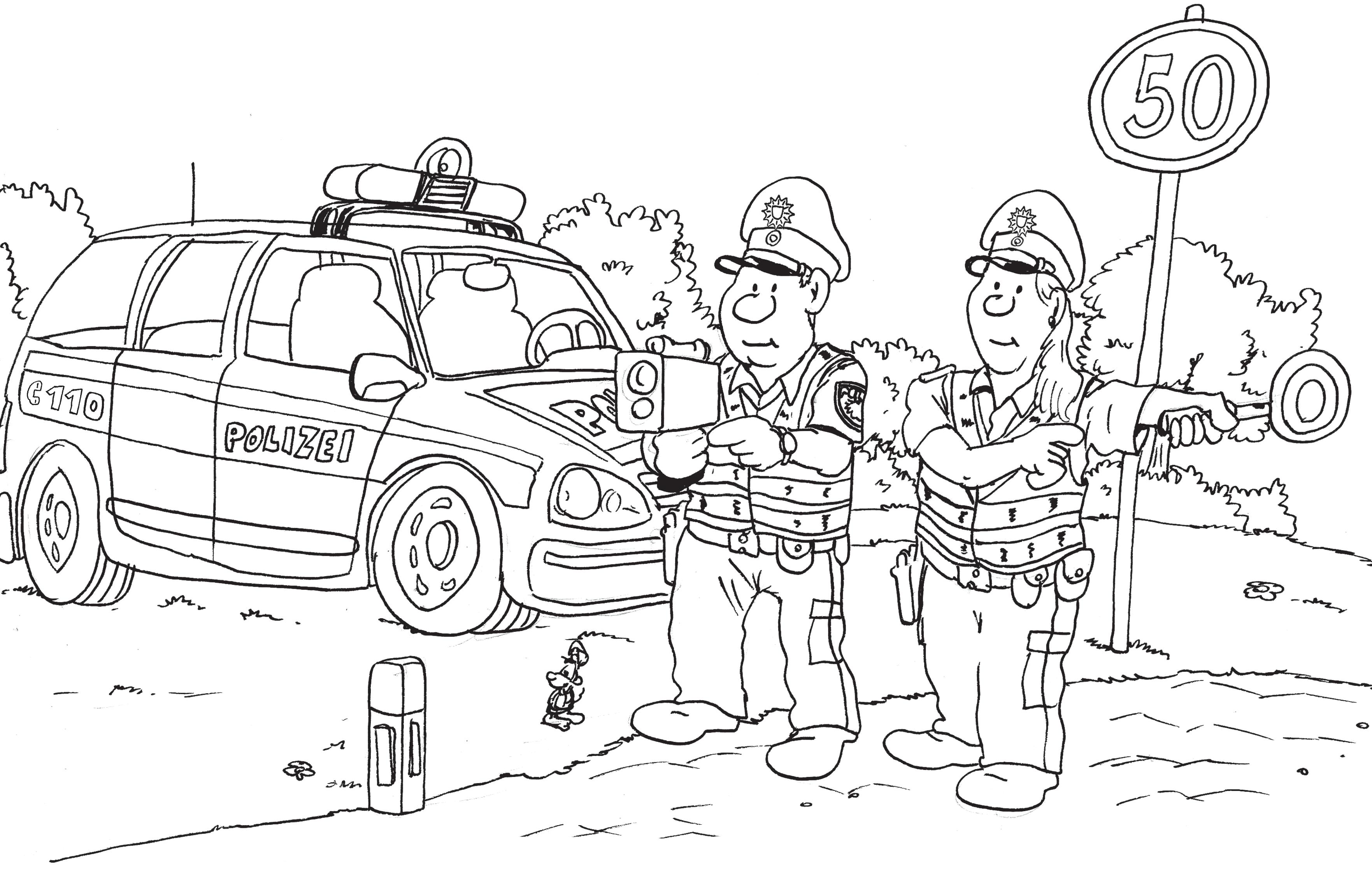 Leider gibt es immer noch viel zu viele Autofahrer, die im Straßenverkehr zu schnell unterwegs sind. Deshalb kontrolliert die Polizei die Geschwindigkeit mit einer Laserpistole. Dabei tragen alle Polizisten immer hellgelbe Warnwesten mit reflektierenden Streifen, um für alle Verkehrsteilnehmer gut sichtbar zu sein.