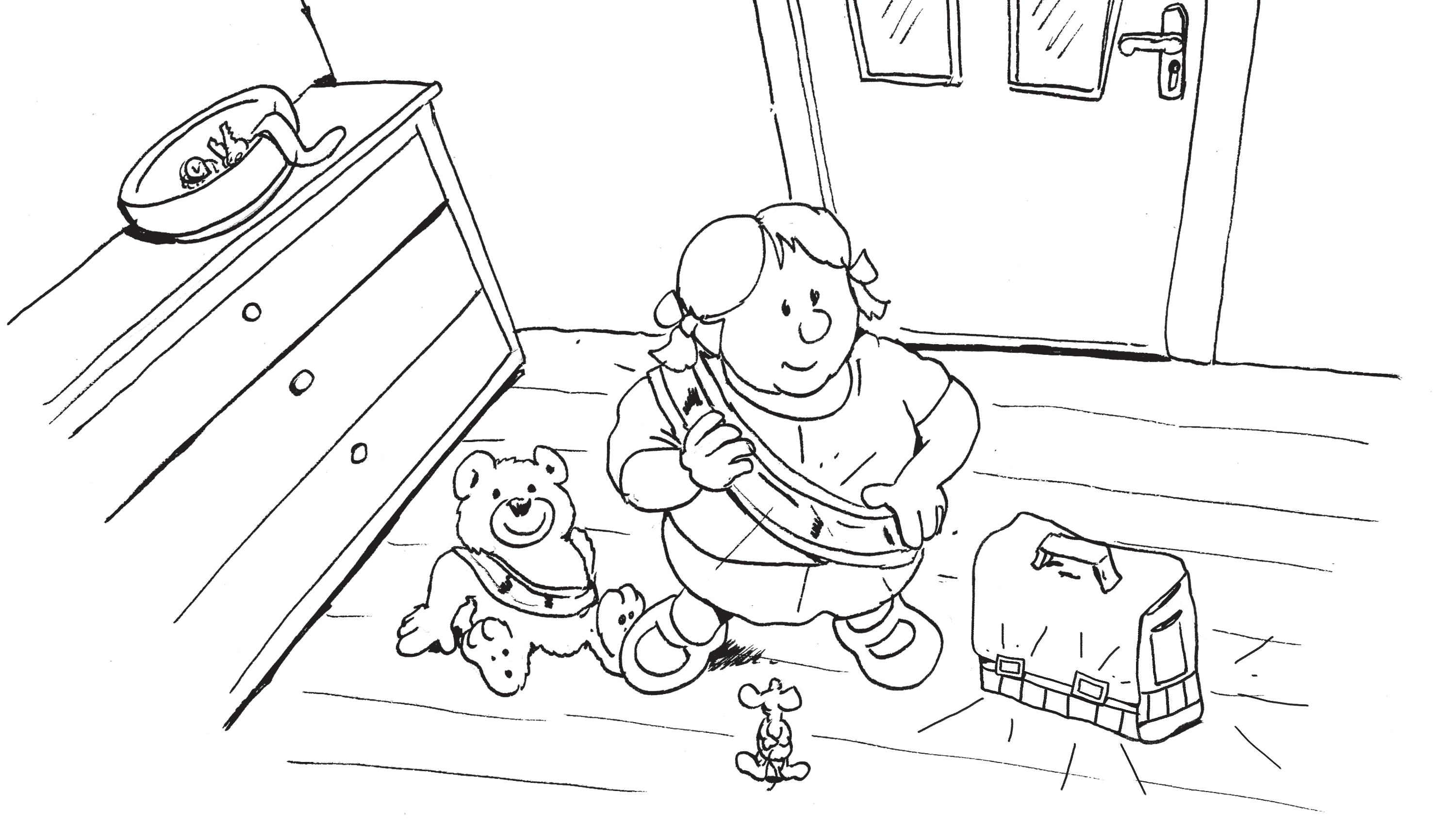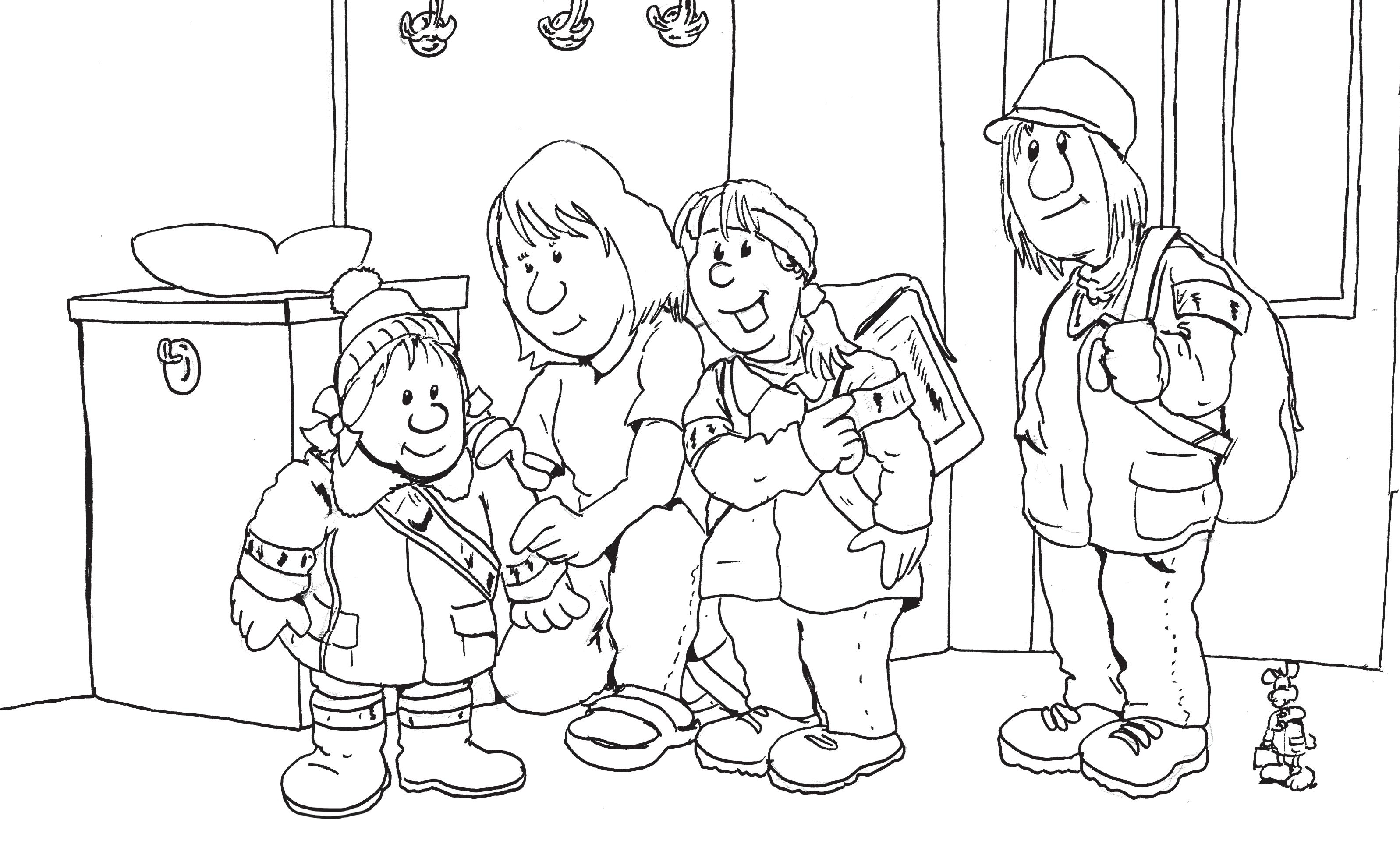 Frühmorgens geht es bei Familie Herrmann immer ein wenig hektisch zu. Während das Licht noch in das Vorzimmer scheint, wird Theresa von Mama Heidi für den Kindergarten fertig angezogen. Die Jacke von Theresa und auch ihre Schuhe haben streifenförmige Reflektoren, die in der Dunkelheit hell leuchten. Zusätzlich hat die Mutter für Theresa eine reflektierende Schärpe besorgt, welche sie über ihrer Jacke tragen kann. So ist Theresa für alle Verkehrsteilnehmer gut sichtbar.