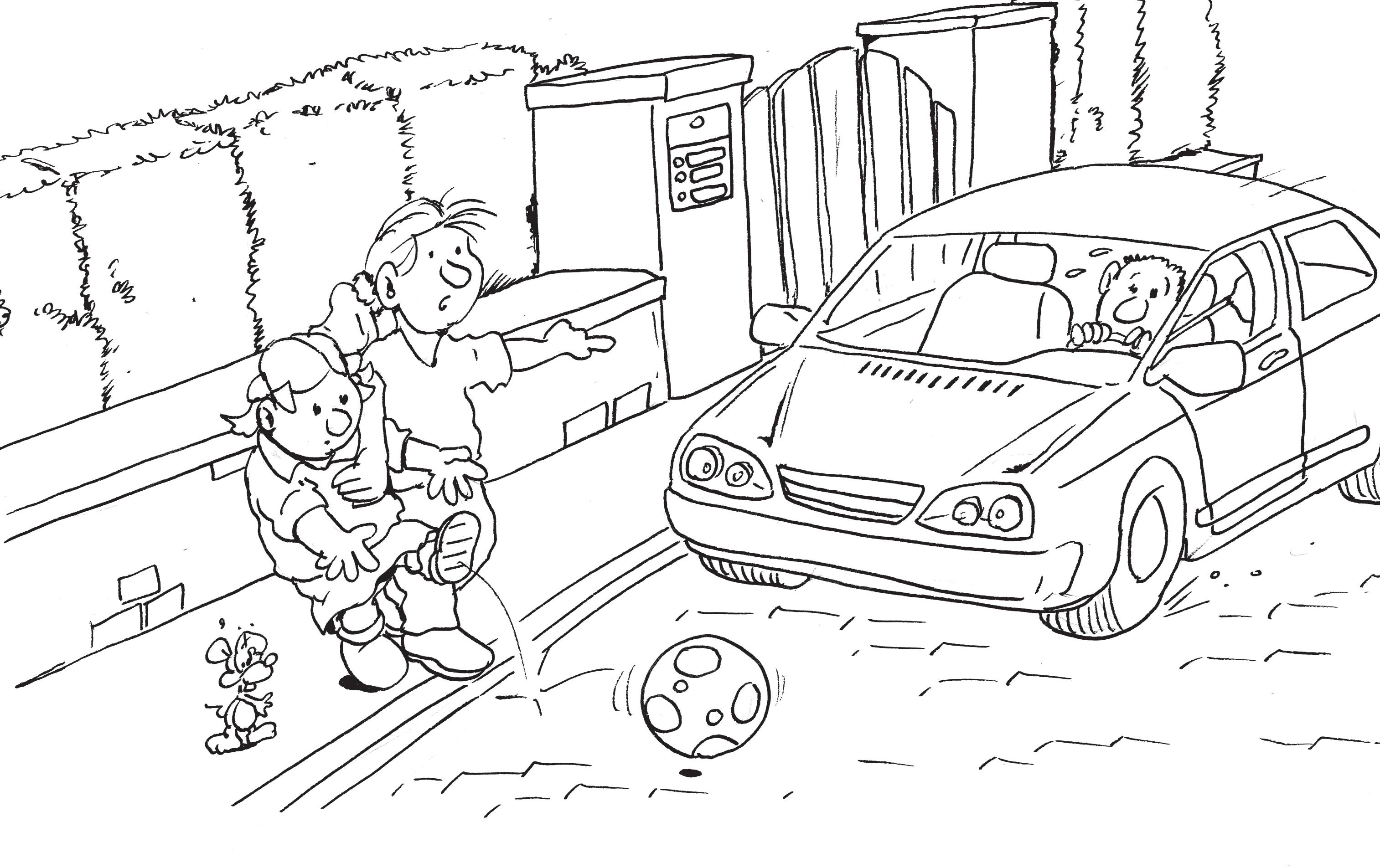 Nachdem Natalie ihre Schulaufgaben erledigt hat, entschließt sie sich, mit ihrer kleinen Schwester draußen Ball zu spielen. Theresa trägt den Ball unter dem Arm und läuft auf dem Gehsteig vor dem Haus los, als ihr der Ball wegrutscht und auf die Straße rollt. Plötzlich taucht ein Auto auf und Natalie ruft in Richtung ihrer Schwester: „Bleib stehen!“ Theresa reagiert sofort und wartet, bis das Auto, das nicht mehr rechtzeitig bremsen konnte, an ihr vorbeigefahren ist. Erst dann betritt sie die Straße, um den Ball zu holen.