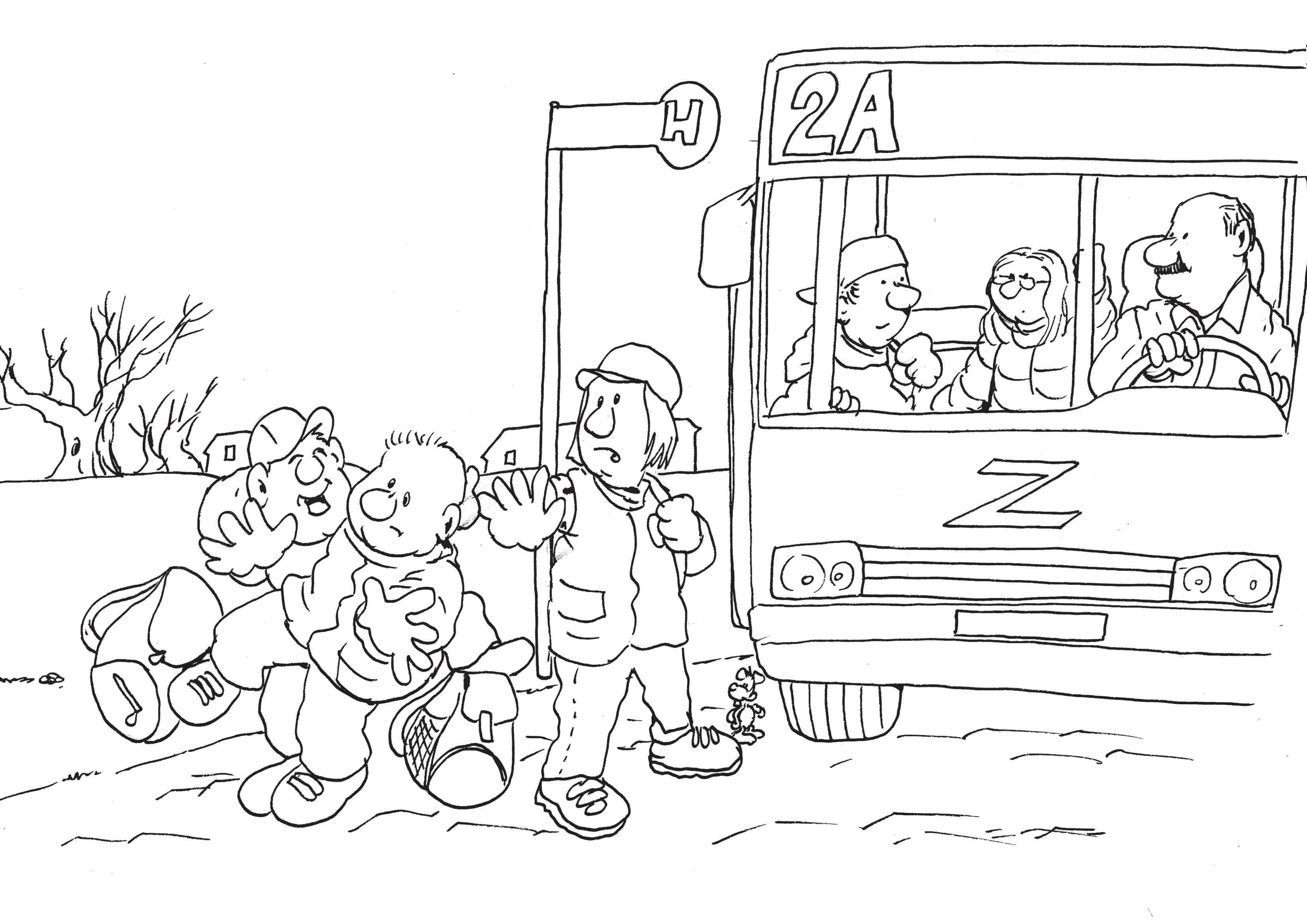 Thomas geht nach der Schule vom Gymnasium direkt zur nahen Bushaltestelle, wo er einige Klassenkollegen trifft. Alle warten auf den Bus und als sich dieser der Haltestelle nähert, wird auf entsprechenden Abstand zum Fahrbahnrand geachtet. Niemand schubst oder drängelt – denn wenn hier ein Kind aus Versehen auf die Straße und vor den Bus stürzt, kann das schnell böse enden!