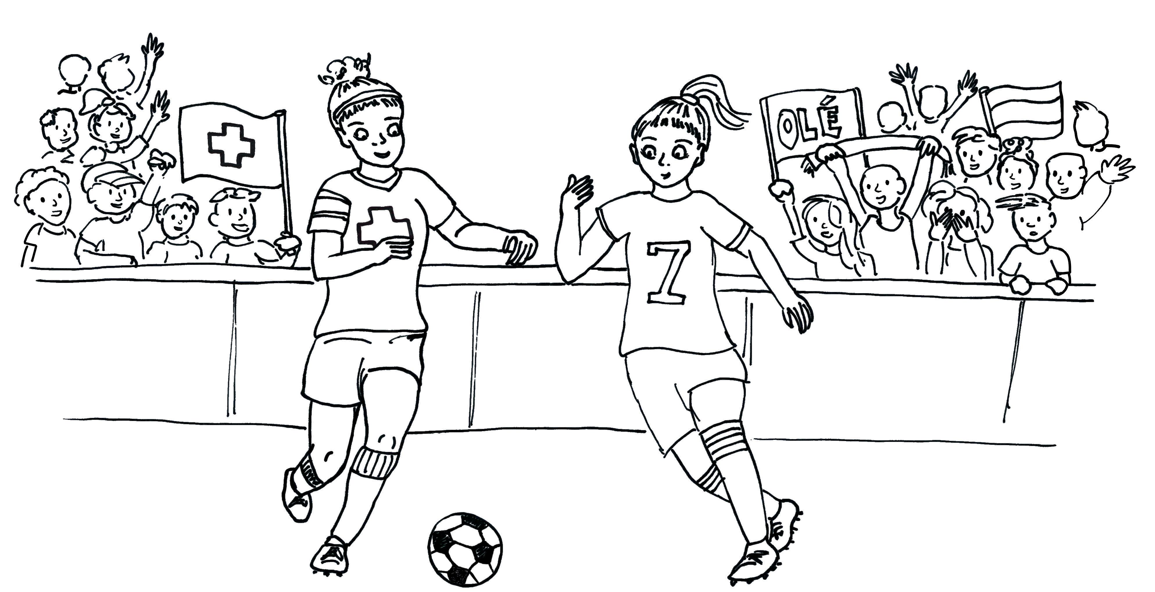 Die Fans feuern euch an und ihr gebt alles auf dem Platz – bei Sonne, Wind und Regen. Mit Köpfchen und Teamgeist spielt ihr euch nach vorn. Ihr trainiert fleissig, haltet zusammen und gebt nie auf. Respekt, Einsatz und Fairness – bei jedem Spiel.
