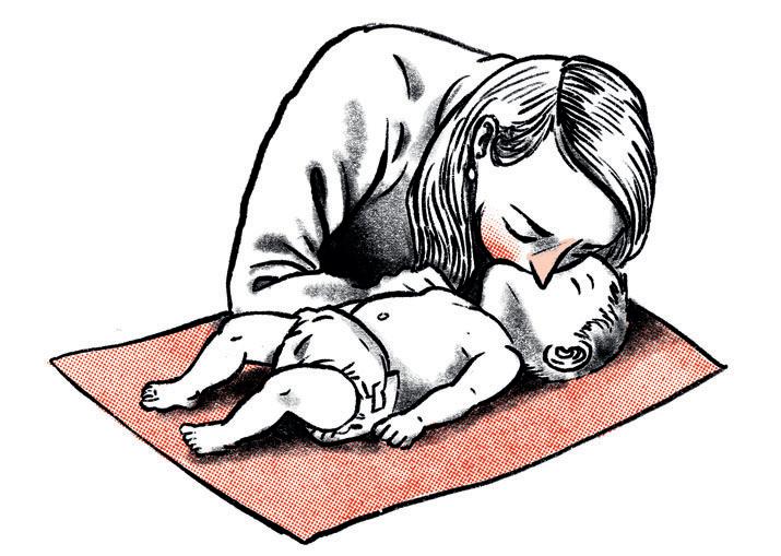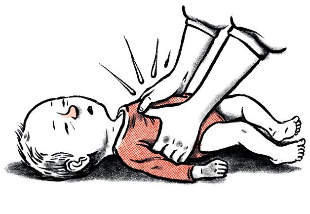 • jednou rukou chytíme dít za elo a druhou pod bradou