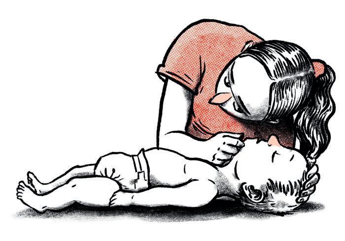 • sledujeme hrudník dít te – v pravidelných intervalech se zvedá