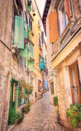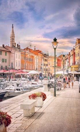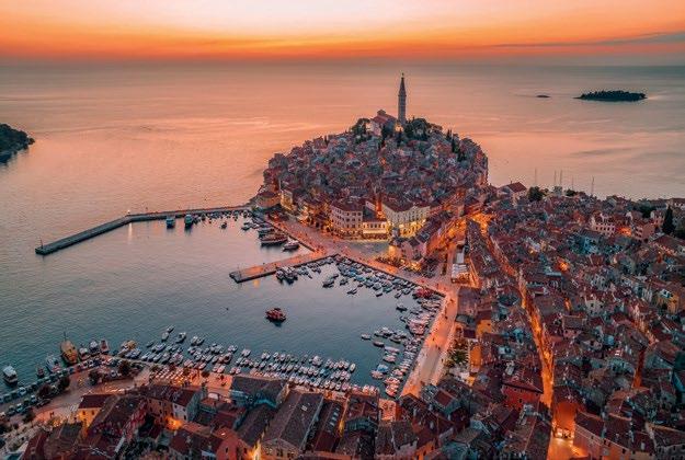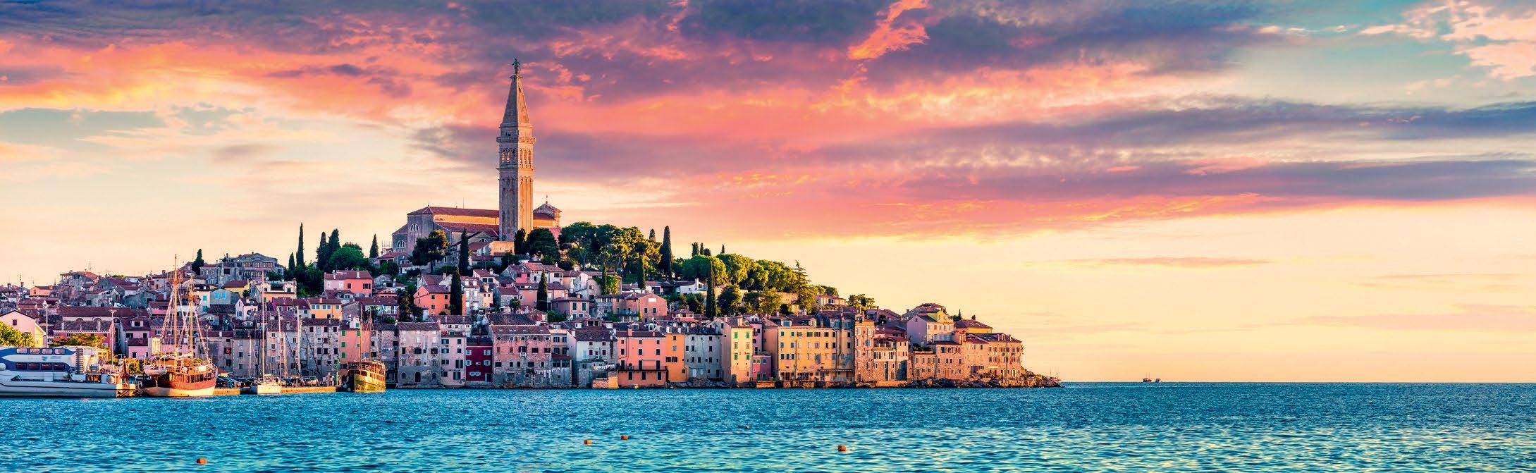 Rovinj is located close to Lim Channel, on the west coast of the Istrian peninsula, that people have been settling for centuries. Down to the seafront there is the high and rocky coast on which houses are crowding and towards the inner part of the old city center there used to be medieval and renaissance city walls which can be seen even today. A hilltop Church of St Euphemia overlooks the city. From its sixty meters high tower the Rovinj archipelago, consisting of 22 island amongst which St Catherine’s and St Andrew’s islands are the biggest and most beautiful ones, can be seen. At the top of the tower there is the statue of St Euphemia, that rotates carried by the wind and pointing its direction. Rovinj, which is a city of fishermen, is best symbolised by the traditional wooden boat - batana and a traditional song – bitinada.