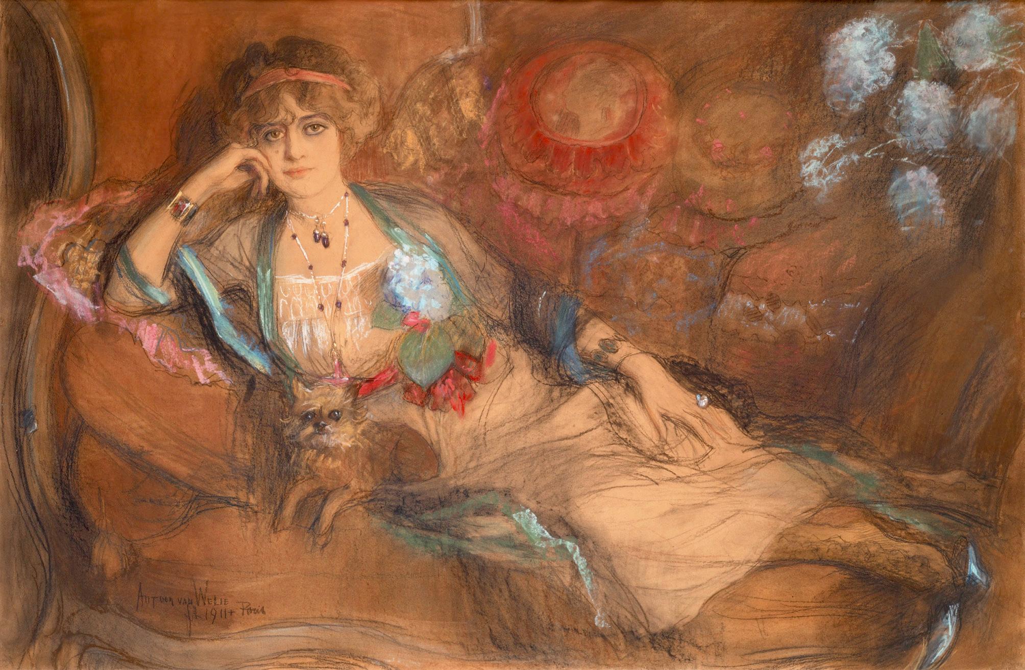 Damesportret, zittend opgemaakt, 1908