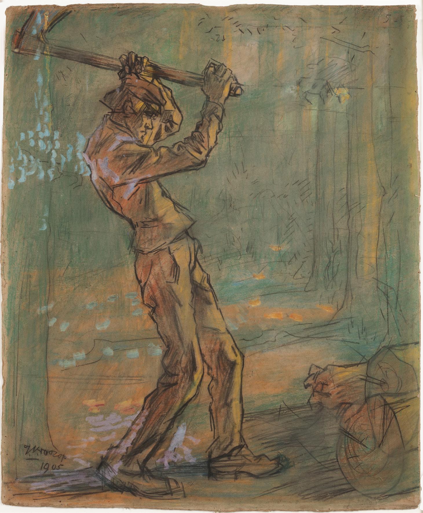 Houthakker in namiddagzon en bos, Domburg 1905