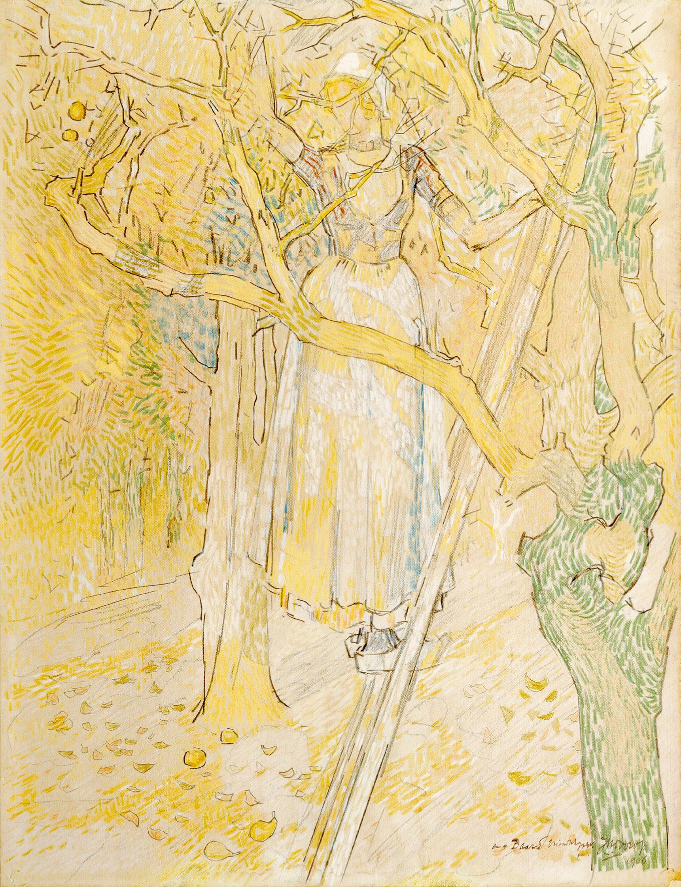 Appels plukken in de boomgaard, 1906