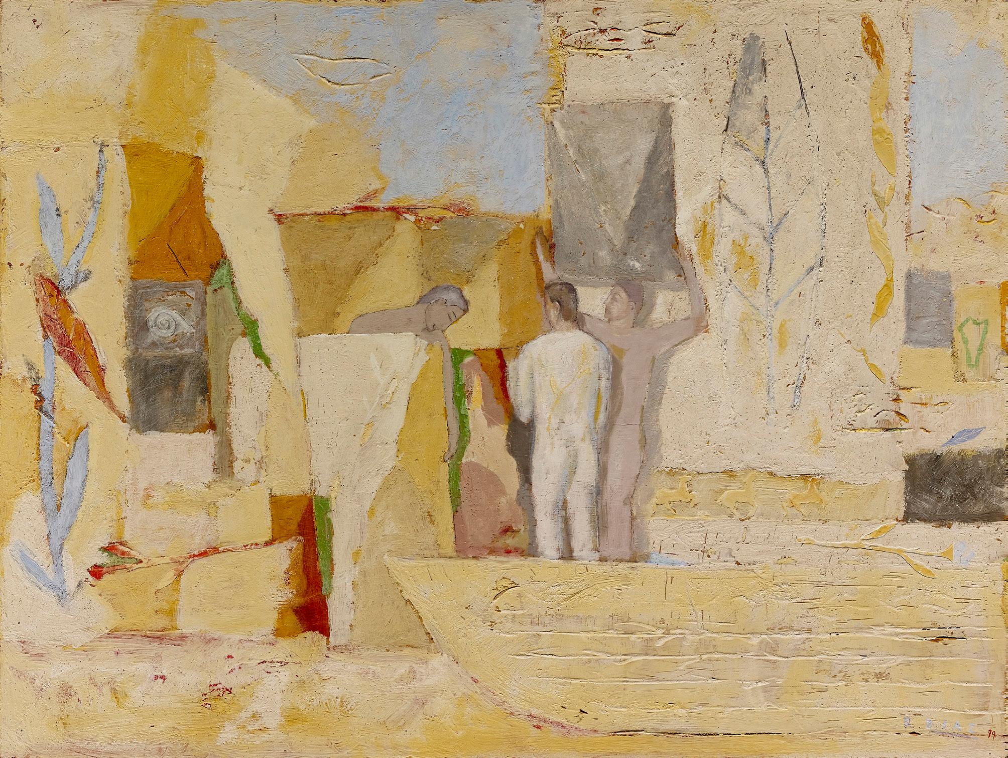 Gesigneerd en gedateerd op de achterzijde van het doek, gemonogrammeerd rechtsonder