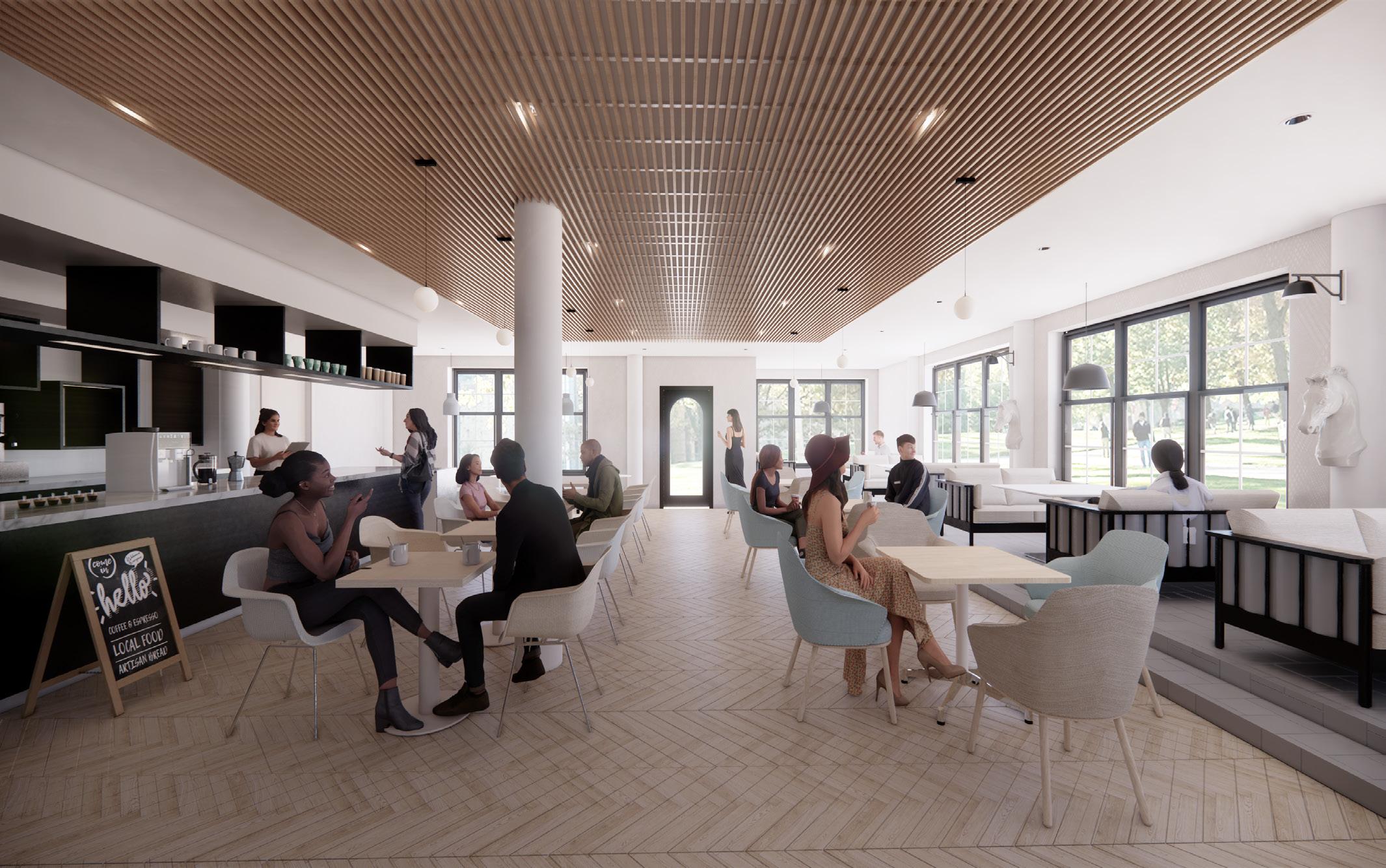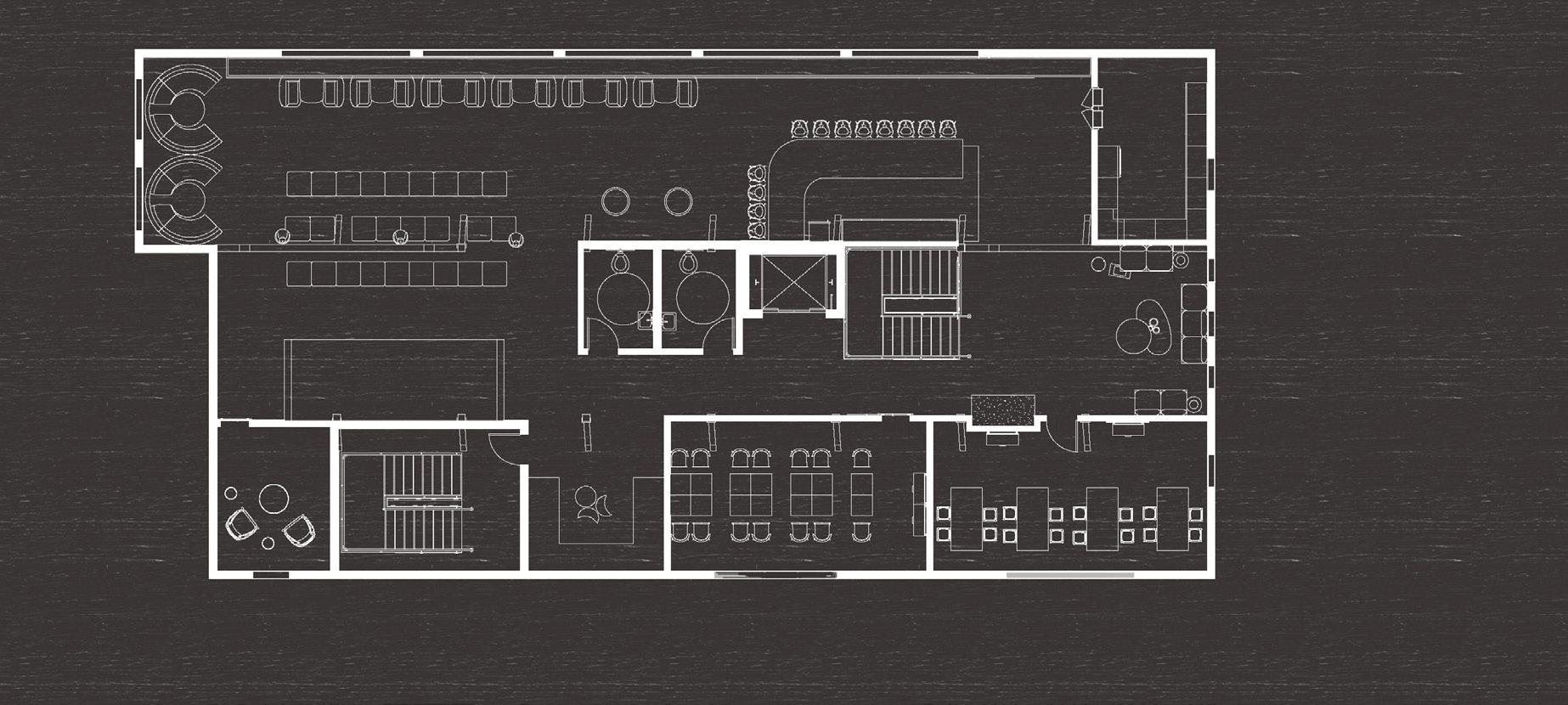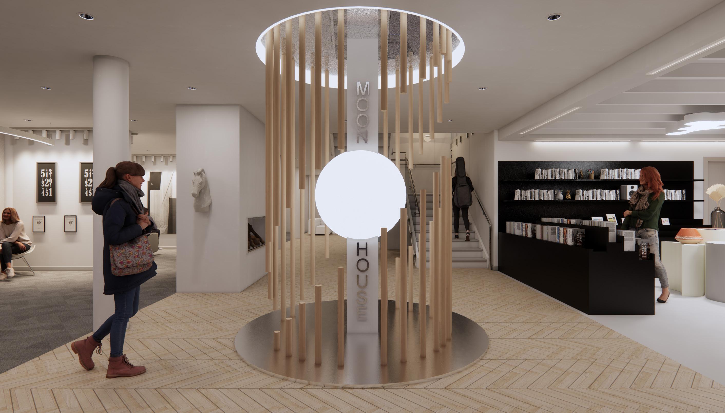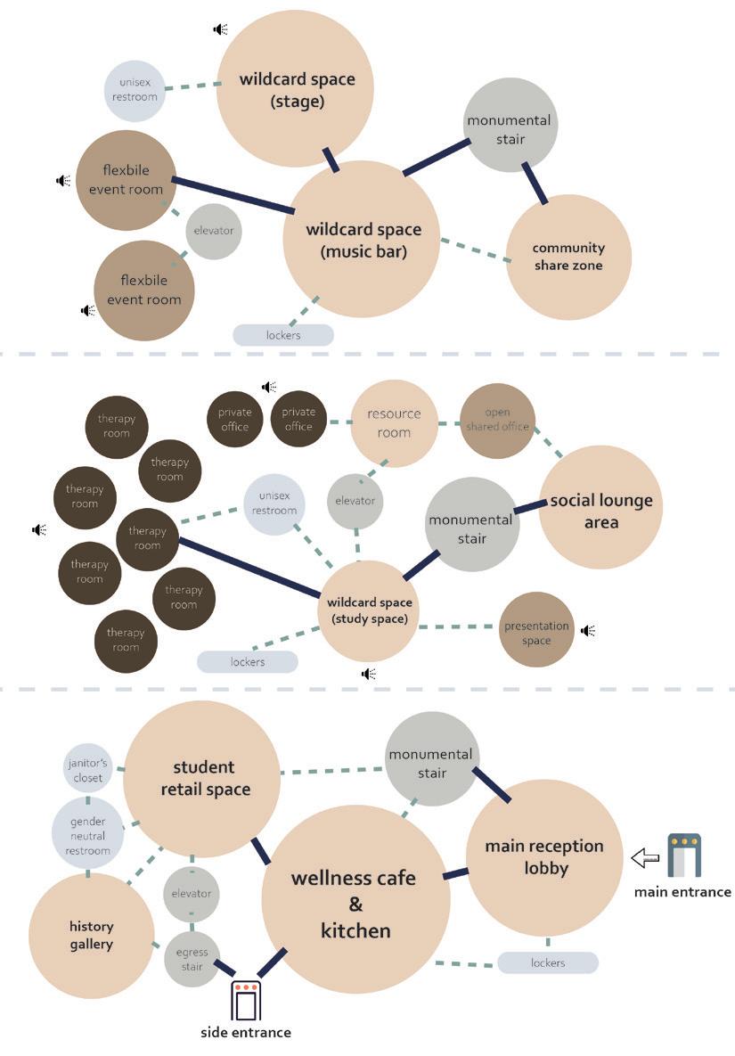 The Moon House boosts a wellness cafe, evening bar, and a special performance area for student activities such as music and comedy. The pet therapy rooms, the wellness cafe, stduent work retail space, and the historical gallery are located on the first two floors, create a intimate, calming and healing atmosphere. As students move up to the third floor, the space becomes more dynamic, engaging, and mysterious. The Moon House bar and the Moon House show encourage students to develop creativity, socialization and contribution to a larger community.