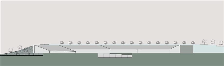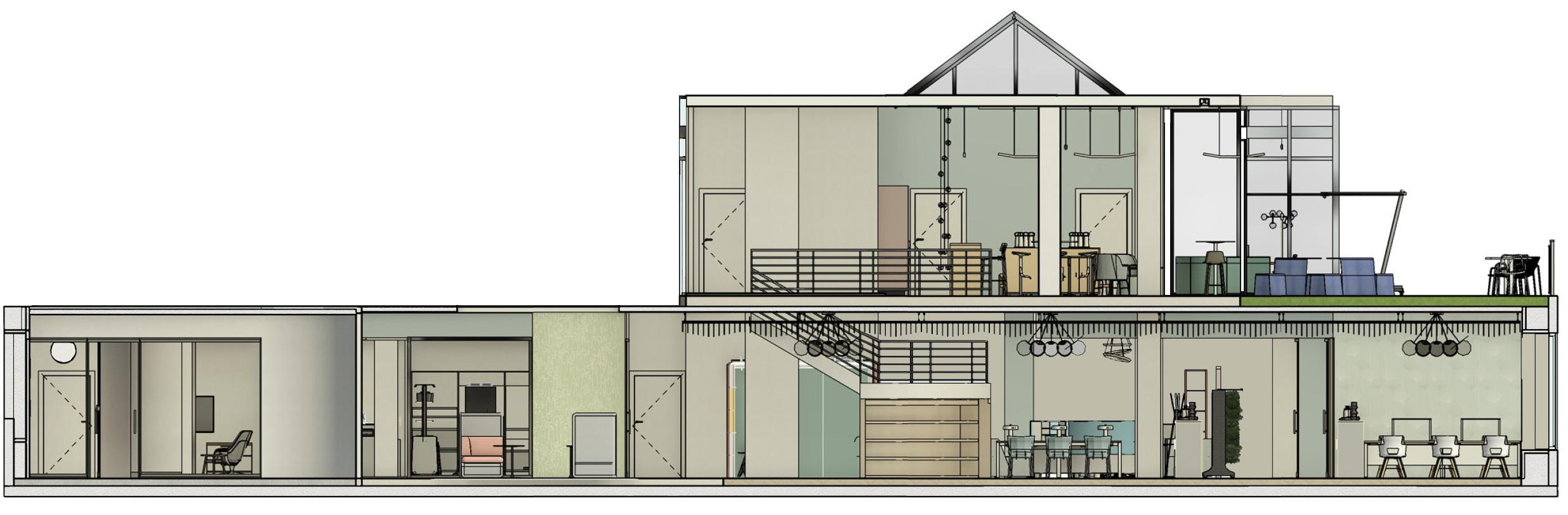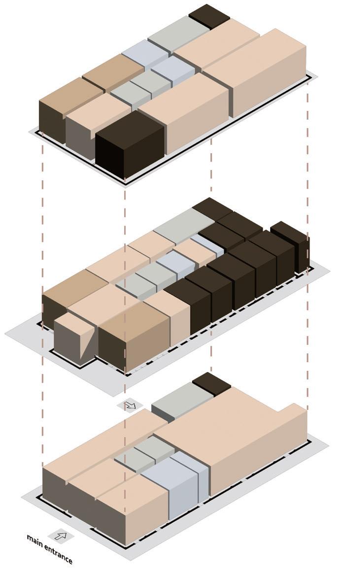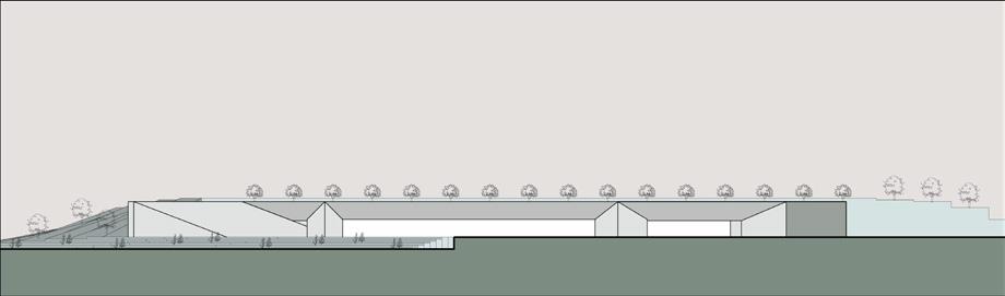 The design idea is to create a “split” effect, while the top level is extremely geometric, the bottom level is more organic. The sectional facade is cohesive from the outside, while the inside is porous and permeable.