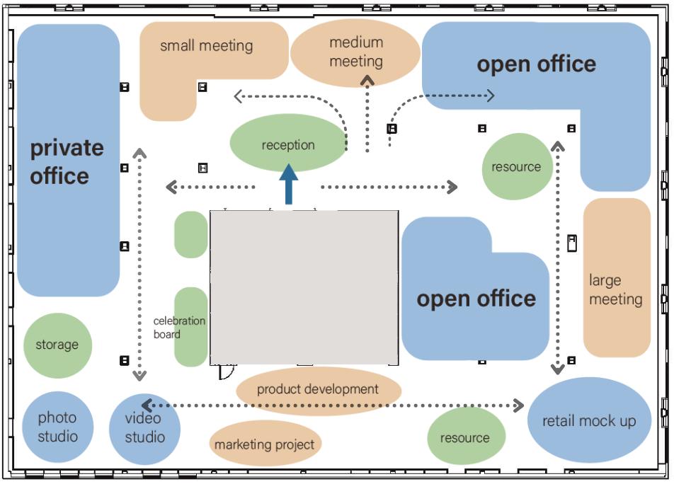 The NEXT project is a office space design for a start-up clean beauty company that is based in Manhattan, New York. Flexibility, inclusitivity, sustainability, and privacy are achieved through a calming color palette, biophillic design, and dynamic circulation with in the workspace. The design of the space will create an unique identity rooted in Korean culture featuring a beauty spa and a meditation yoga studio.