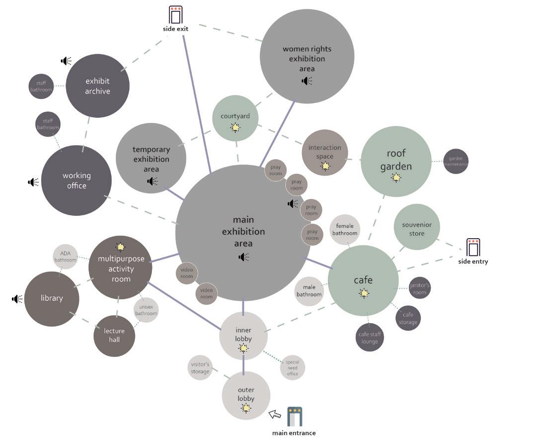 • A change in ceiling height and materials to show a transition to the next phase.