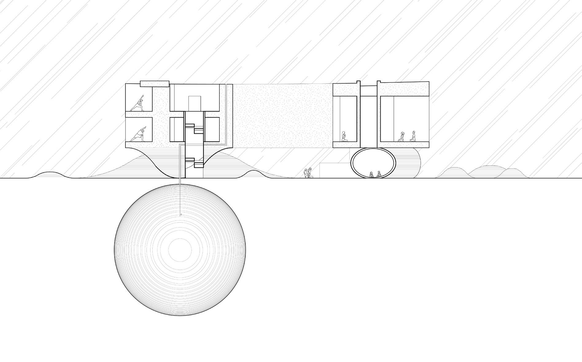 With the concept of water shortage, the architecture and plantation is arranged based on the landscape, indicating the water level change during the change of seasons.