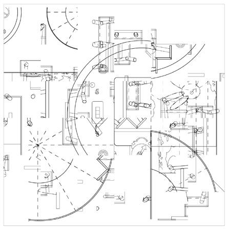 Continuely, Part B further develops arrangement of figures, shapes, edges and spaces that are suggestive of relationships. Along with the analysis with O.M. Ungers’ plan typology diagrams, the artifact is redrawn as a prototypical plan, based on analysis, indicating walls, columns, poche, space and organizational logic.