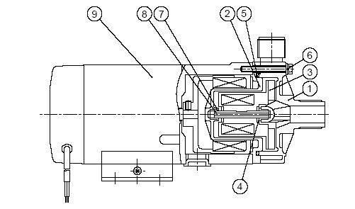 Item No. Description Item No. Description 1 Screw 5 Rear Casing 2 Front Casing 6 Drive Magnet 3 O-Ring 7 Motor Assembly 4 Impeller 8 Retainer (MD-100R,100F, 70RZ, 55F only) 9 Bracket