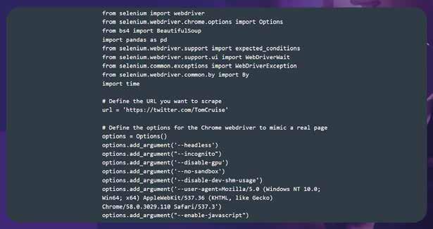 Here, we will scrape Twitter data using the same method we did for Facebook with Twitter data scraping services. For this, we will take Tom Cruise’s Twitter page and separate a selector for the required data. The Twitter scraper will take care of the entire process.