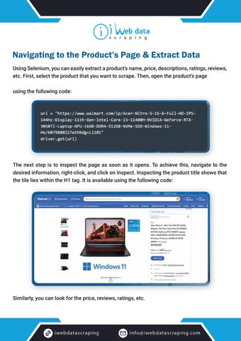 Using Selenium, you can easily extract a product’s name, price, descriptions, ratings, reviews, etc. First, select the product that you want to scrape. Then, open the product’s page using the following code: