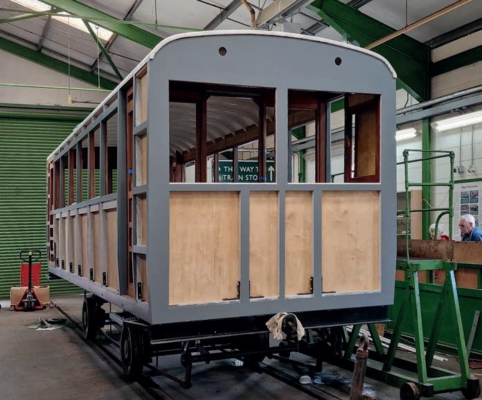 Drewry Railcar 2 has been completed and is in regular service. Ryde Pier Tram Trailer Car 10 is nearing completion. Work includes the exchange of the driving controls from the Ryde end of the driving car to the trailer car, and the two-car unit is expected to enter service in February 2025.