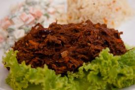 Estofado:Estacomidasecomponedevariascarnes: res,cordero,pollo,cerdo.Tomate,cebolla, ajo,miltomate,achiote. Esteplatillosedisfrutaenlas fiestasmásimportantescomosuelenserenlas bodas.
