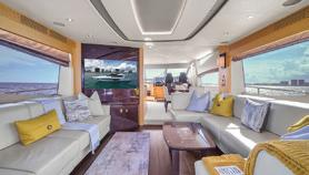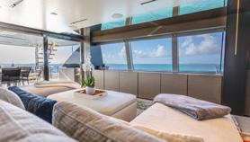 Made for fast cruising and luxurious comfort, designed with liveability in mind, generous volumes throughout GIGRECA equal that of a much larger yacht, while her sleek design gives the feeling of being right on the water. Highlights include the multi-purpose cockpit, styled as a ‘terrace on the sea,’ beach club space, and spacious main salon with a stunning backlit marble bar. Perfect for living the good life at sea, she is a true beauty with a modern luxe vibe.