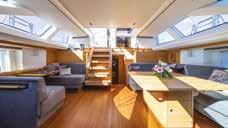 A luxury performance sloop with a contemporary luxe interior usually found on larger yachts, designed for fast cruising and luxurious comfort.