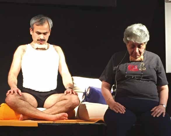 not coming today. I am taking the class.” Everyone is sitting there with eyes closed but my Indian friends are looking at me aghast thinking, this is not a good joke, please come down, Geeta will appear any moment! So I taught the class. That’s how I started.