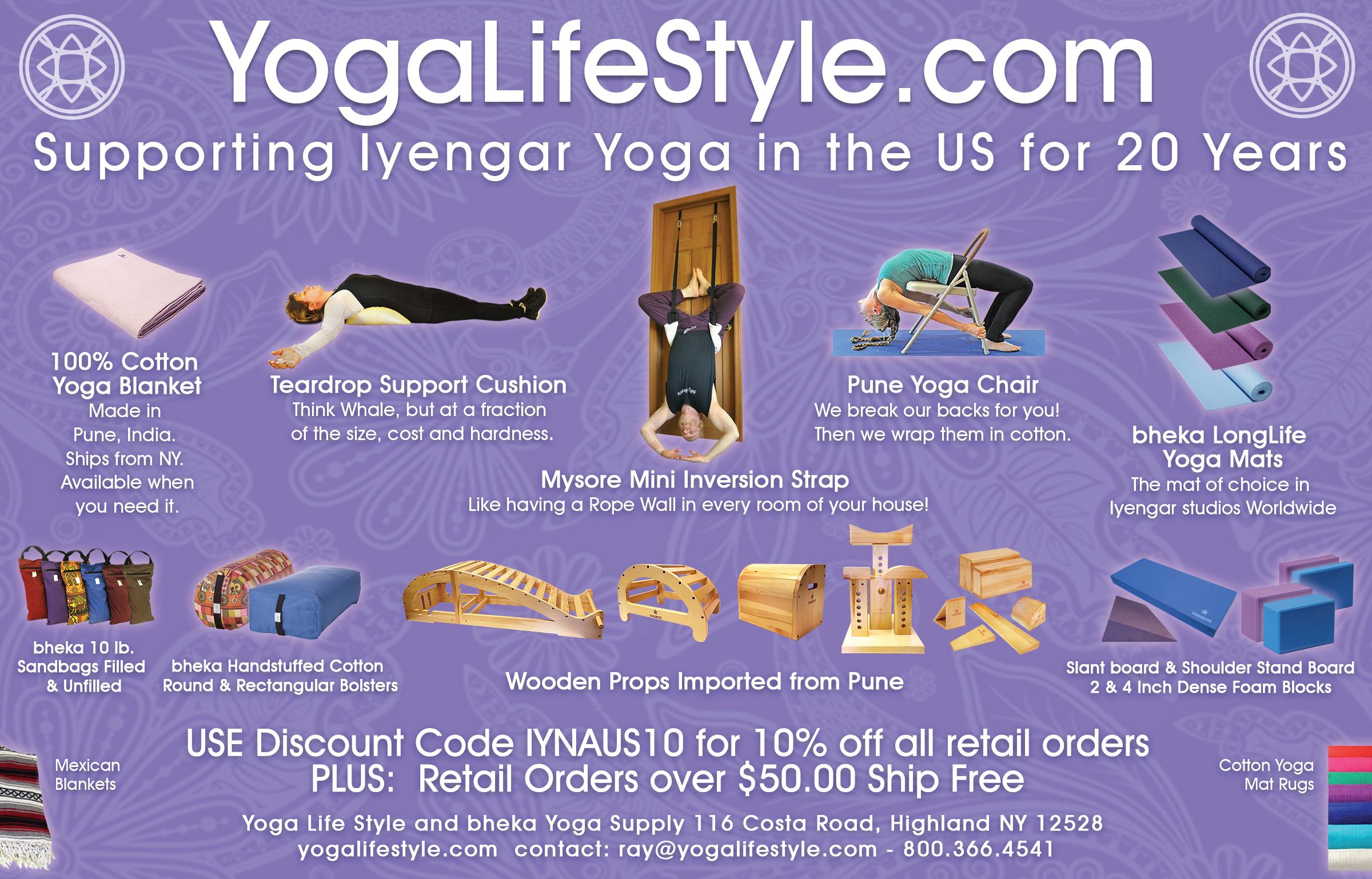 B.K.S. Iyengar Yoga National Association of the United States c/o Gloria Goldberg 770 Sycamore Avenue, Ste. 122-136 Vista, CA 92083 USA www.iynaus.org