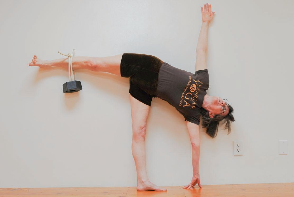 I present adaptations to the back leg of the lateral standing poses. They should not all be applied at once. Practice using one of the supports at a time, starting with the lift to the inner back foot. Work up the leg from there. Repeat the same pose using each support separately to gain a deeper understanding of the effects and how it benefits your condition. Then repeat without support in the middle of the room with the imprint of the supports fully engaged.