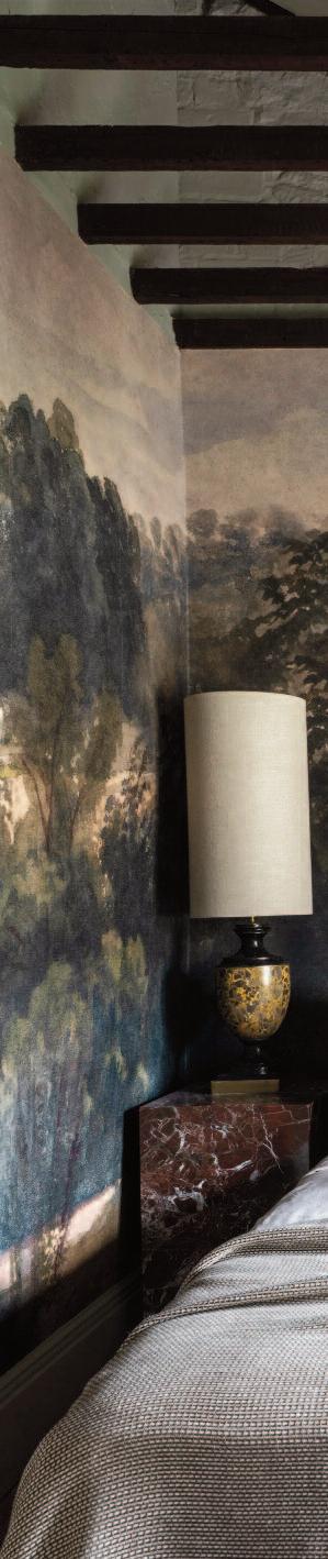 Inspired by the beauty of the surroundings, the cottage features a color palette that reflects all four seasons, from the vibrant green of Summer to the russet-oranges of Autumn. In combination with the work of some of distinguished furniture and textile artisans in the UK, including Timothy Oulton, Upholstory, Robert Kime, Tori Murphy and de Le Cuona.
