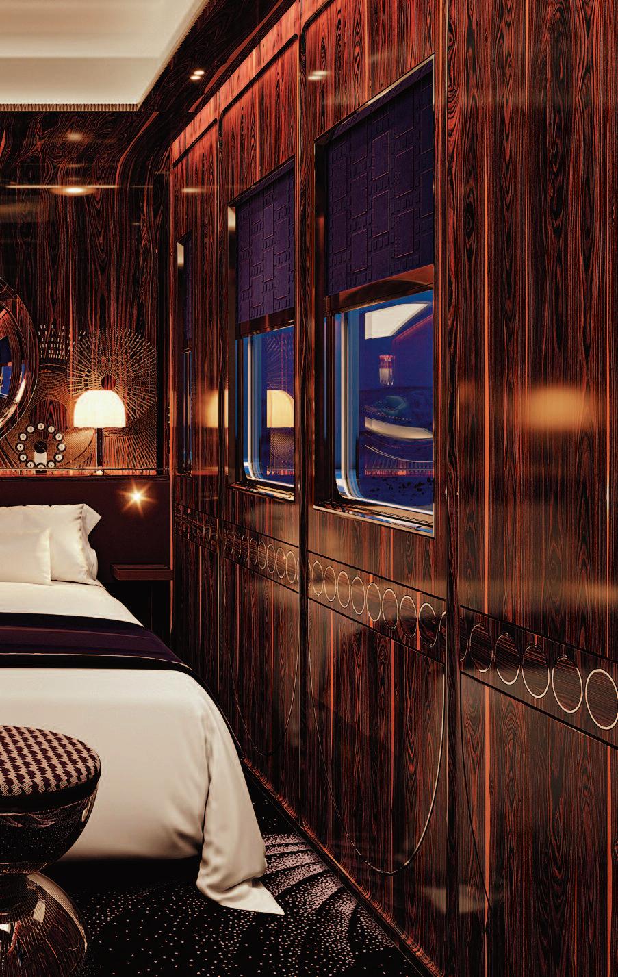 The interiors can be tailored to the owner ' s needs, depending on whether living on board in a more convivial or more private way: the saloon with direct access from the platform, as on the BGX, can be replaced by the owner ' s cabin, offering wide open views and the opportunity of waking up directly in contact with the sea.