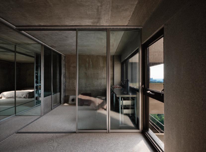 The project Bruj began with a complete clearing out to facilitate necessary upgrades. Freed from all construction systems and obsolete equipment, the unit revealed a monolith of raw concrete, pierced with openings to the north and south