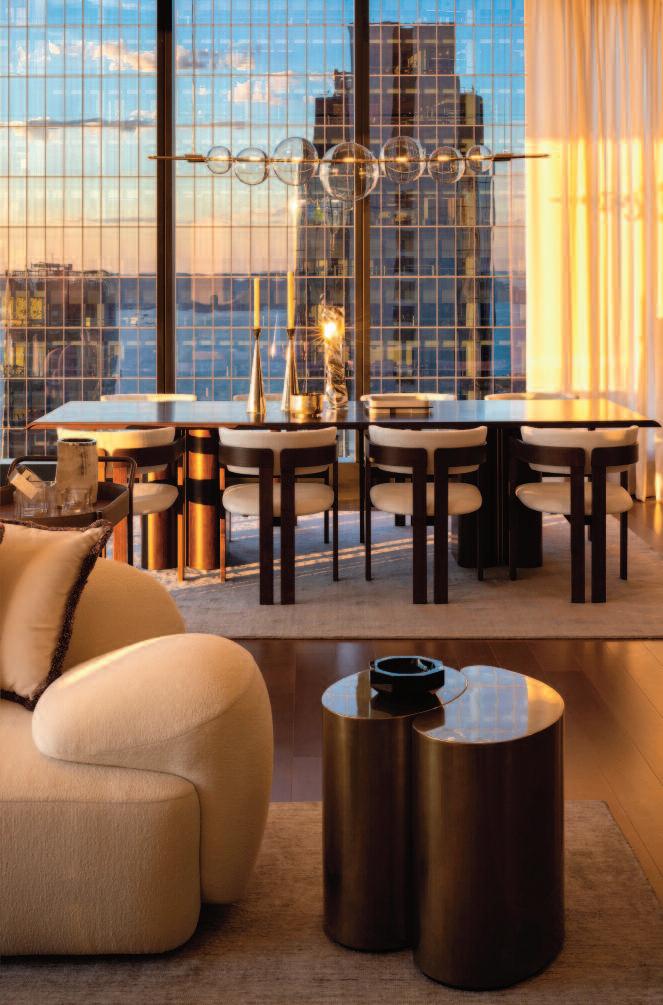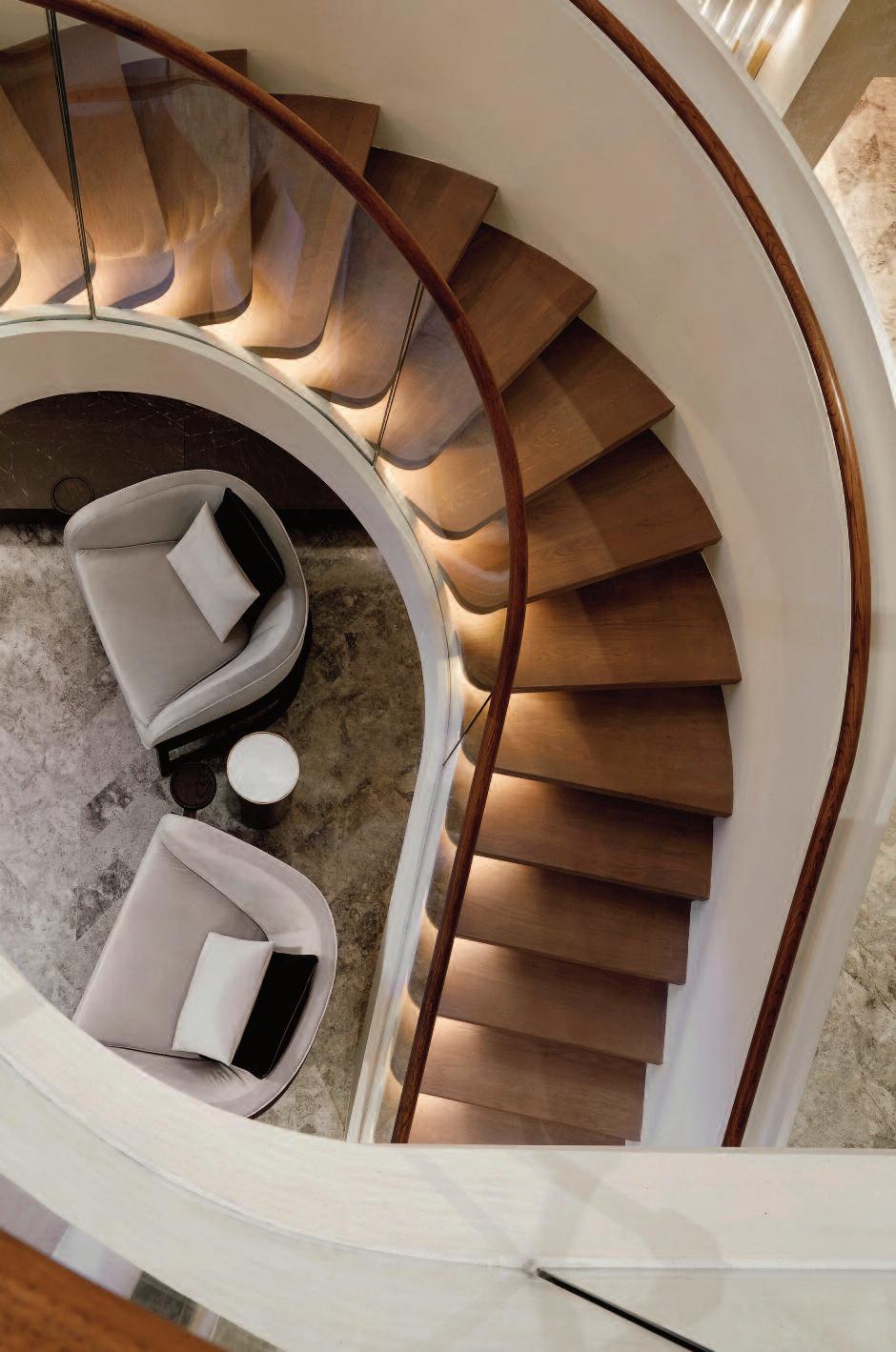 fabrics, hand-stitched leather, Cappuccino grey marble, and dark brown stained oak timber adorn the space, lending an air of tactile indulgence. The same materials extend to the coffee tables and statement centerpieces, creating a harmonious visual dialogue between furniture and architecture. At the heart of this project lies a singular, multicultural, and ambitious synergy between architecture and design. Visionaries Patrick Jouin and Sanjit Manku have pioneered a craft at the confluence of industrial precision and time-honored artisanal tradition. Their collaborative approach dissolves boundaries between objects, interiors, and structures, forging a dynamic, immersive experience.