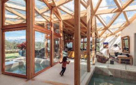 The Selva Alegre residence radiates transparency even at night. The pool was made of local marble while the laminated wood beams were sourced at a sustainable forest industr y in Nor ther n Europe,