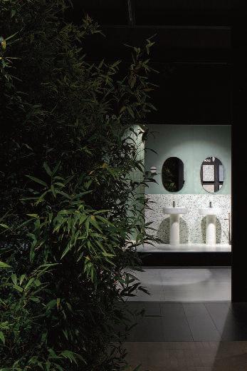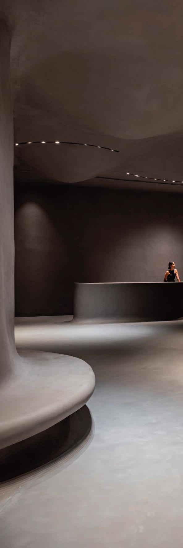 This concrete grey space ser ves to calm visitors, preparing them for the tranquil experience that follows in the 18 sequential zones.