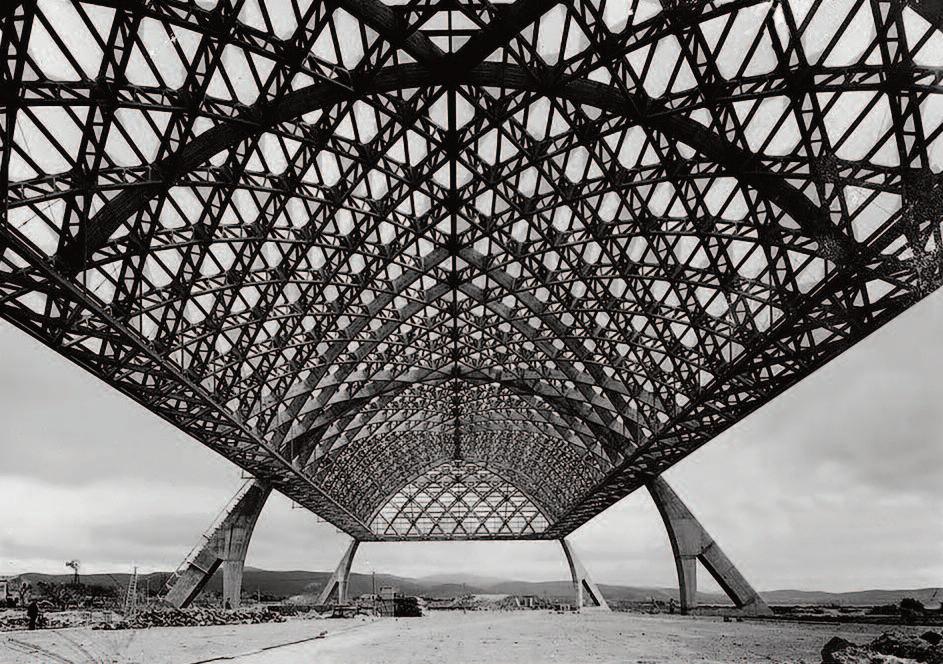 Above: Pier Luigi Nervi, Municipal Stadium, Florence. The structure of one of the Orbetello Hangars under construction. Photographer unknown, ca.1939.