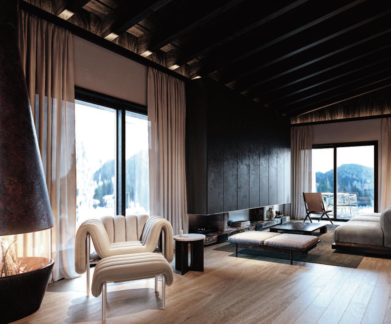 “ e result is a home that, while preser ving its orig inal spirit, feels entirely renewed a sophisticated alpine retreat where each space contributes to a unified and thoug htf ully curated experience.”