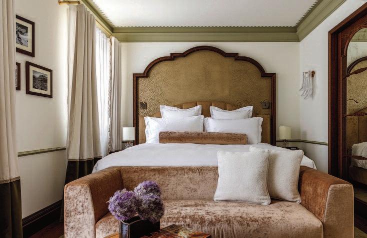 These pages: fo r the d esign of t he in teriors of Aet hos Mo nterosa the desi gners ch oose mat erial s, text ures, patterns and pieces th at created an atmo sp here that feel l ike a natu ral part of th e valley.