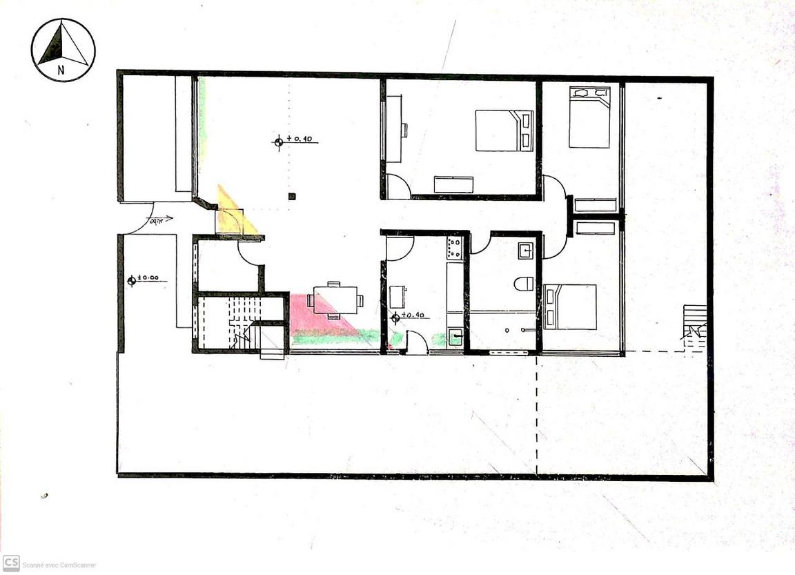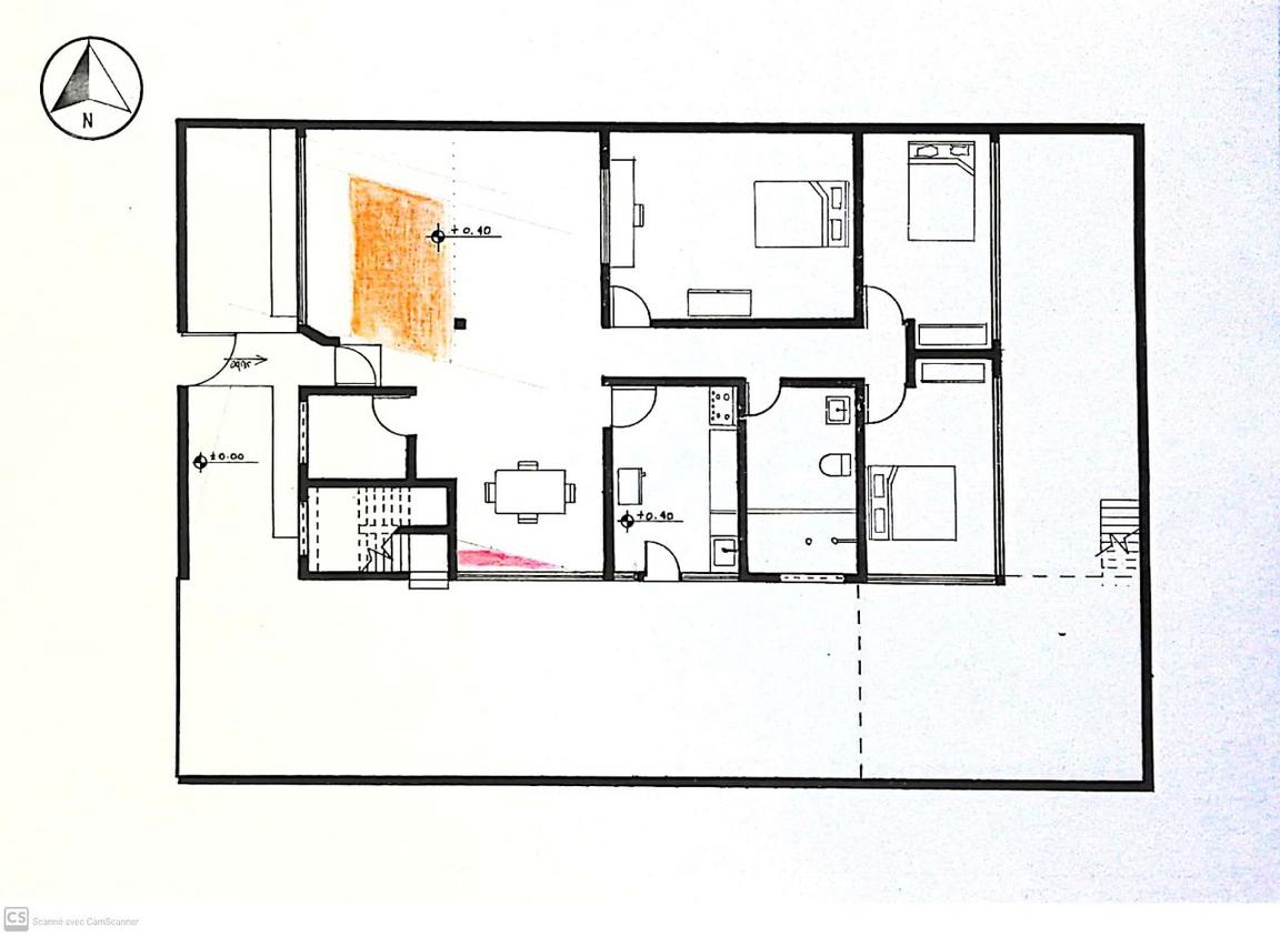 incluyendo el bano, y los tres dormitorios en la planta alta no recibimos sol en el dormitorio de dos camas y tenemos un sobre asoleamiento en uno de los dormitorios.