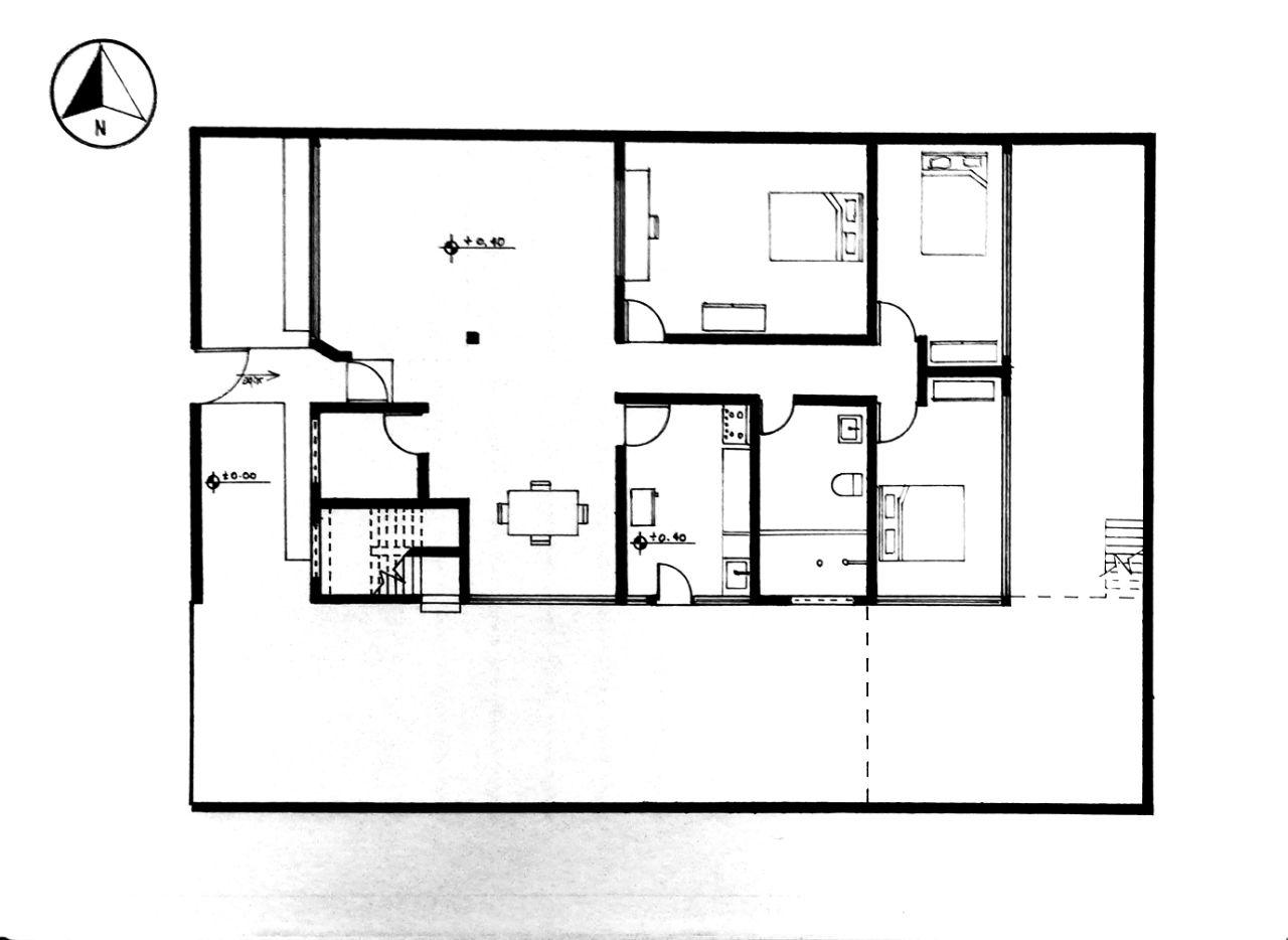 Identificar el norte de la casa, dibujar a mano 4 cortes, dos que coincidan con el eje este-oeste y dos norte-sur, mostrando la maoria de ventanas, tragaluces o patios y una axonmetria volumetrica sencilla. Usando el diagrama solar obtenemos los angulos en corte y en planta de los meses de junio, marzo y diciembre a las nueve, doce y quince horas. Dibujar el ingreso del sol en todos los cortes, tambien dibujar sobre las plantas el ingreso del sol