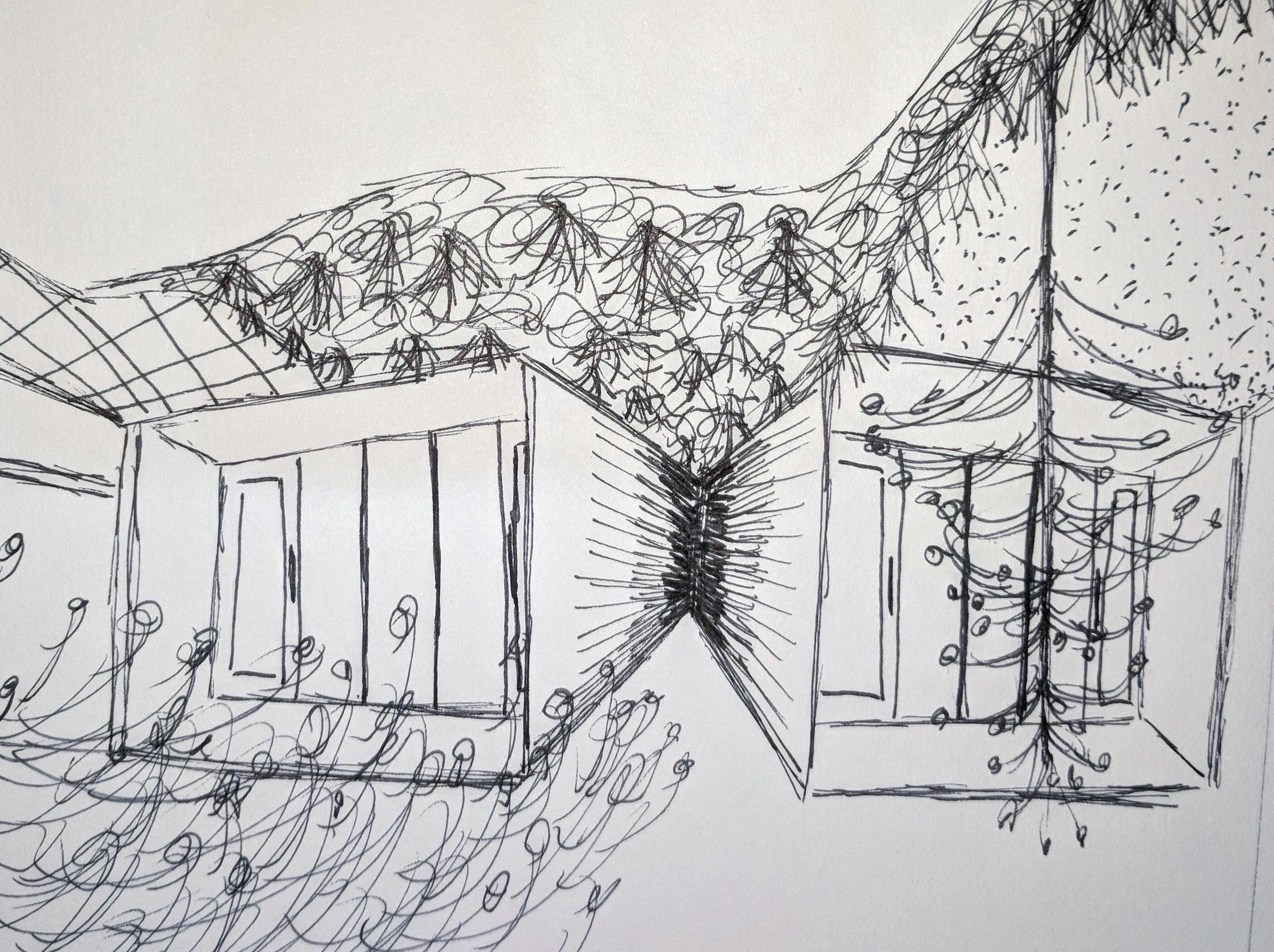 Design in-place. A 3d photomontage was developed from a 360 degree site photo as the beginning of the design process.