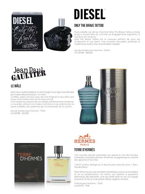 Double page de catalogue Travail de mise en page sur le thème du parfum.