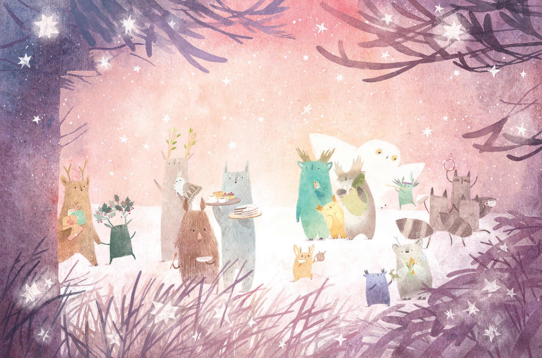 Per gli abitanti del bosco e per le stelle in cielo, l’inverno è diventato magico e molto speciale. Che cosa sta leggendo il Tukone degli abeti? Hai già visto questo libro nelle pagine precedenti? Cercalo con attenzione, non è facile trovarlo! Dovʼè stata messa la tenda magica? Che cosa vedi nel cielo? Sai che fin dai tempi antichi gli uomini hanno dato nomi di animali alle forme che si vedono nel cielo stellato? Ti diamo un piccolo aiuto: qui vediamo la lepre, il lupo e un grosso animale acquatico che si chiama lamantino.