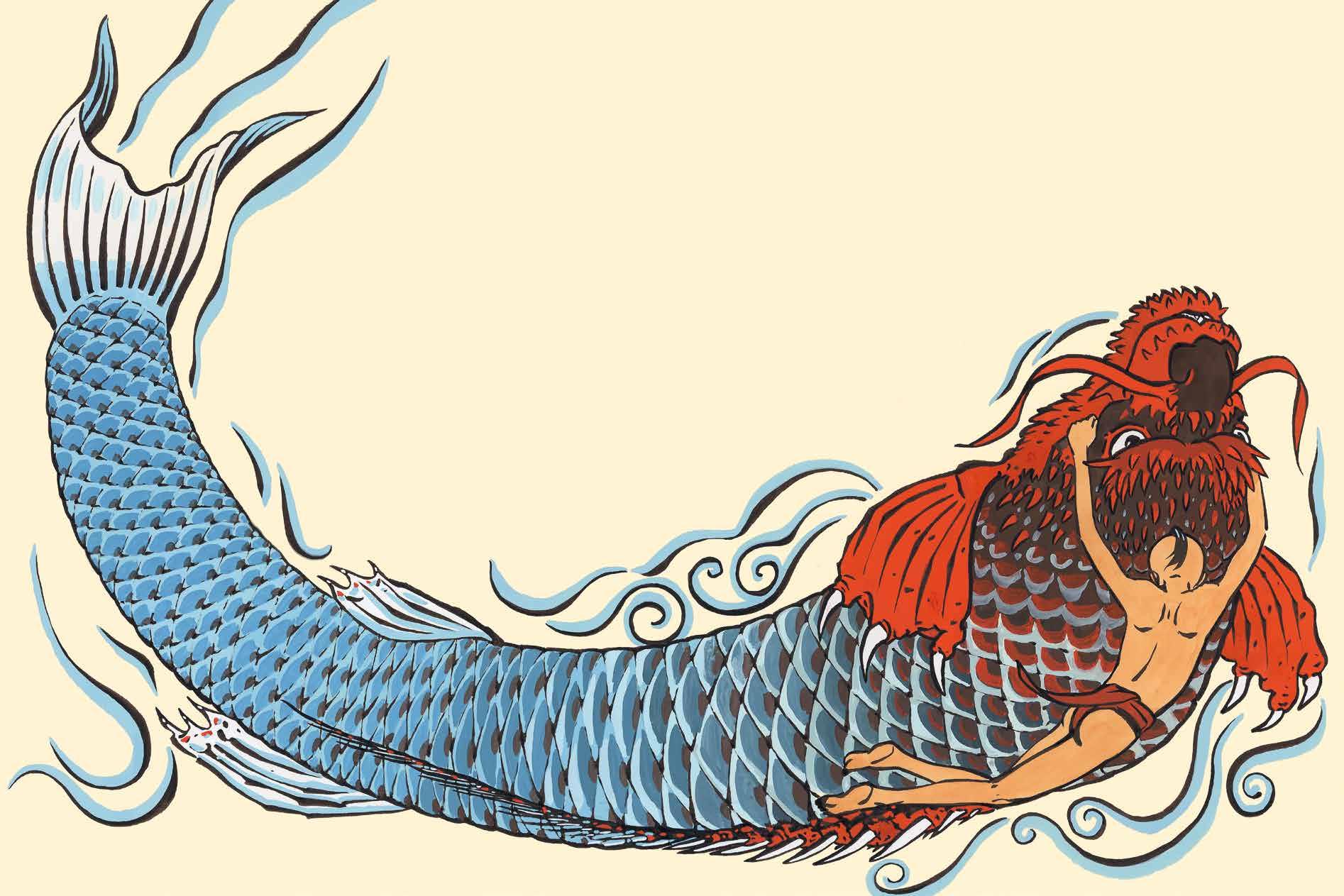 – Aggrappati! ruggisce il pesce, diventato un dragone.