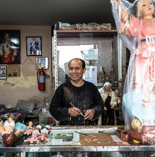 Top left. José runs his family’s business repairing religious artwork and figures. His small shop is full of figurines and altars brought by people from the area and beyond.