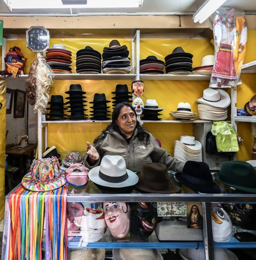 Bottom left. Hats are big business in Ecuador - the misnamed Panama hat was originally from here. At this traditional millinery shop can see how the hats are made and learn about the types favoured by different indigenous groups.